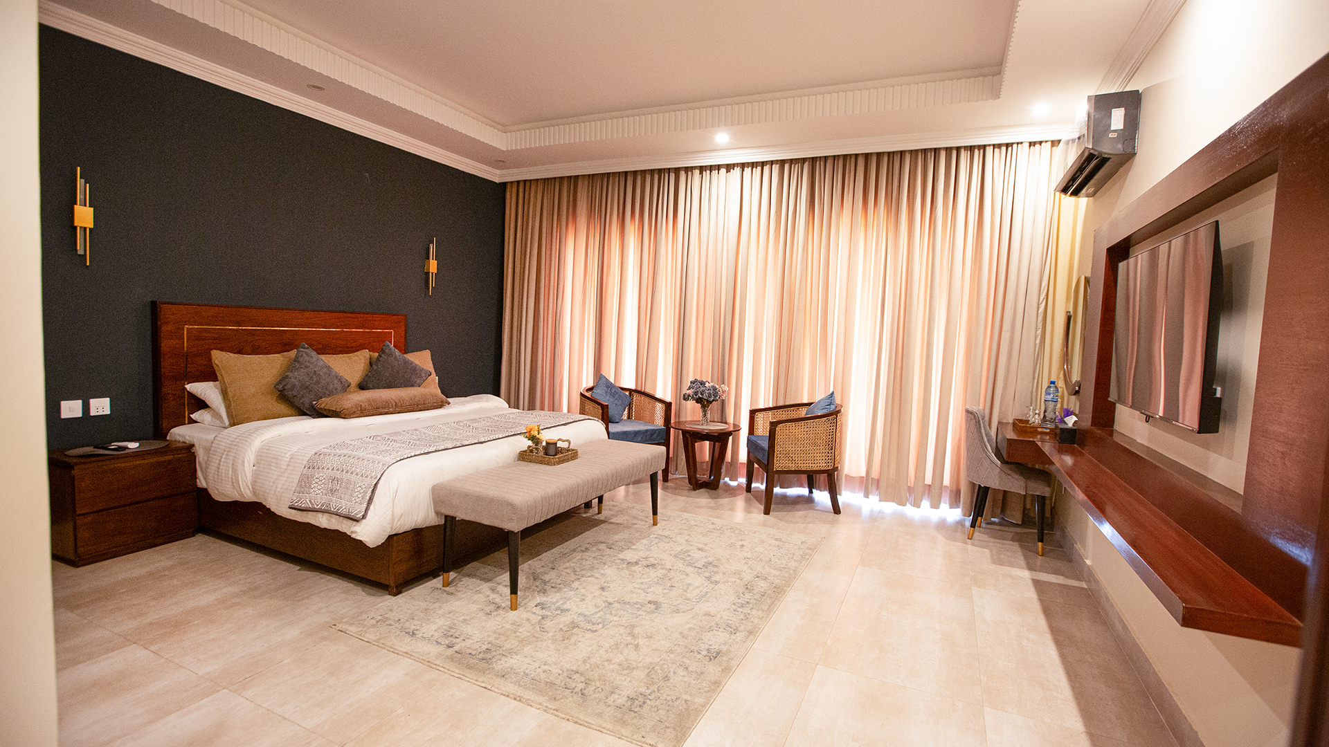 Our Queen Room offers a warm and inviting atmosphere with a comfortable queen-sized bed, air conditioning, and a flat-screen TV. The private bathroom comes with complimentary toiletries, making it a great choice for solo travelers or couples.