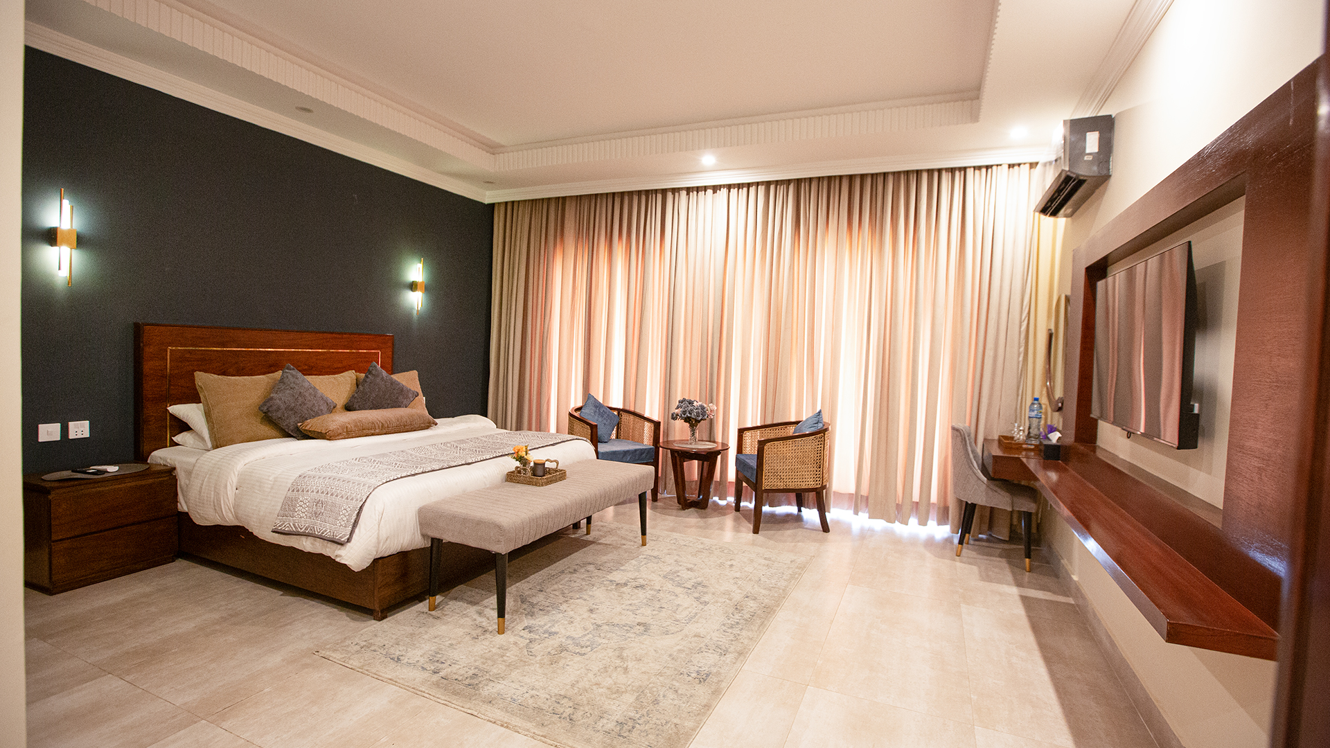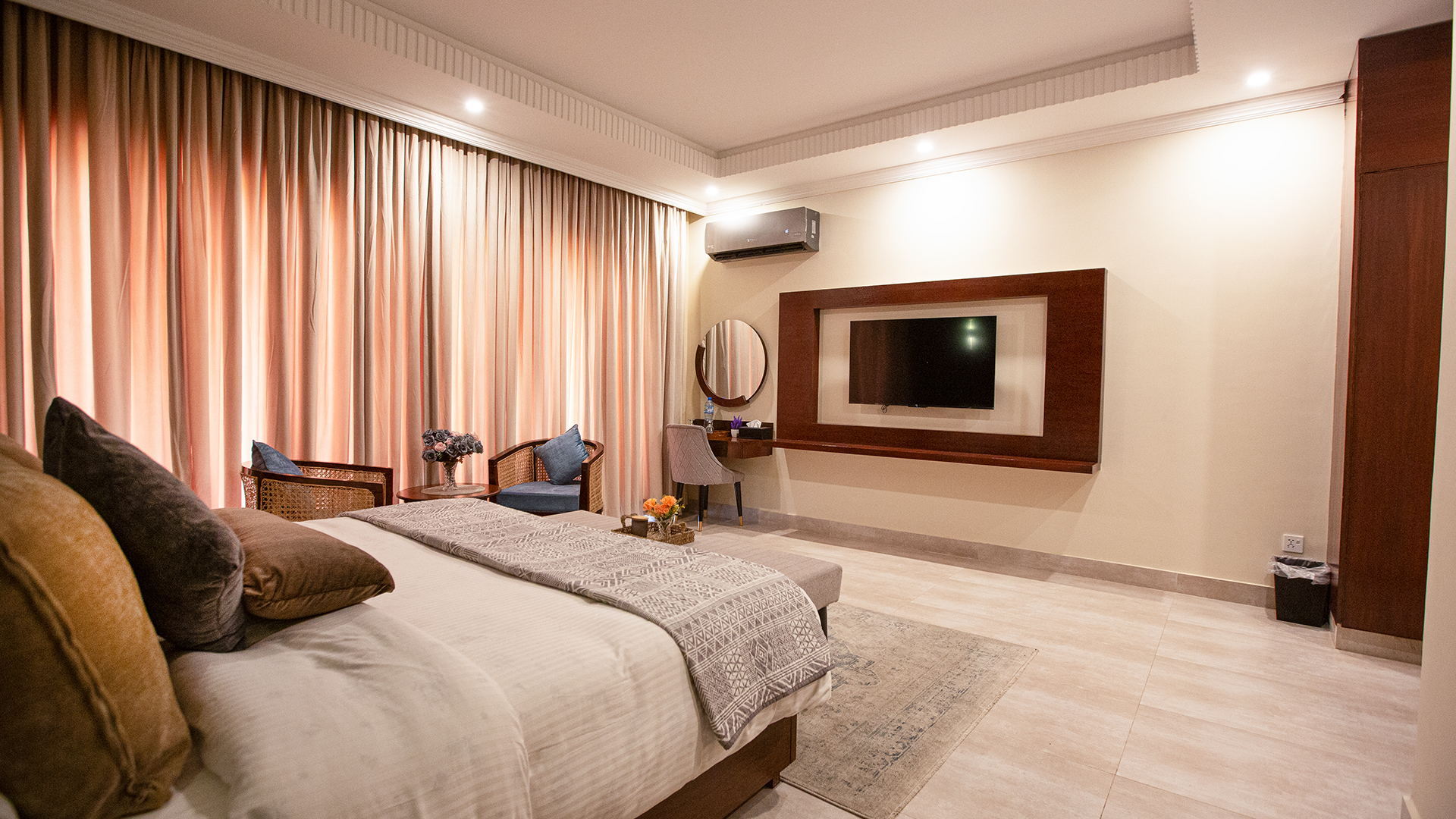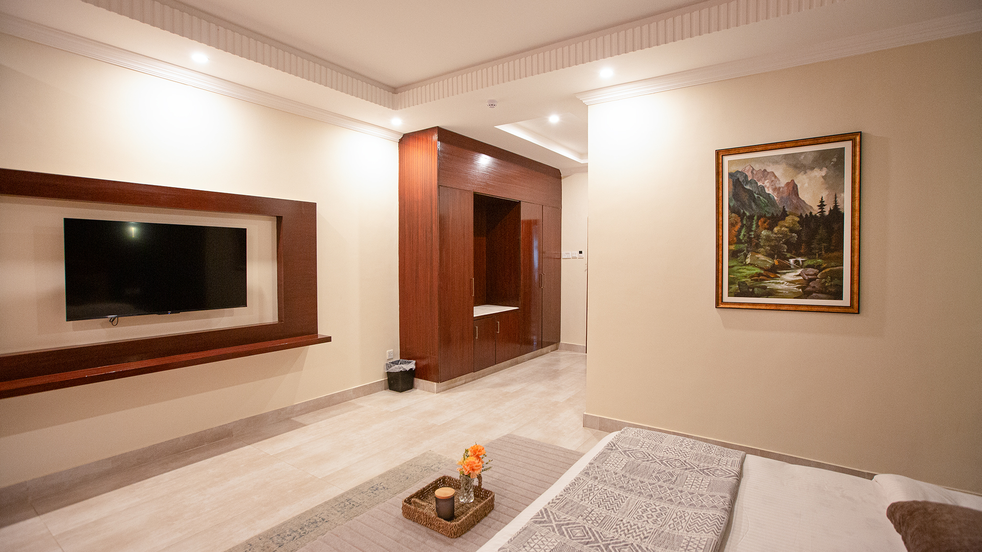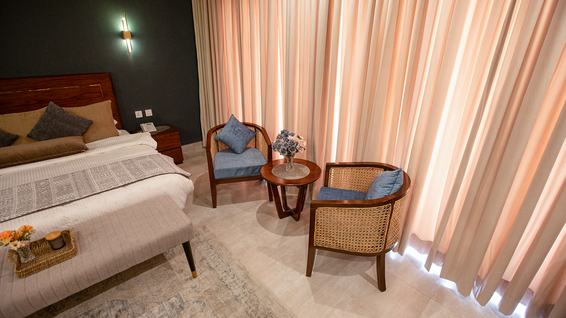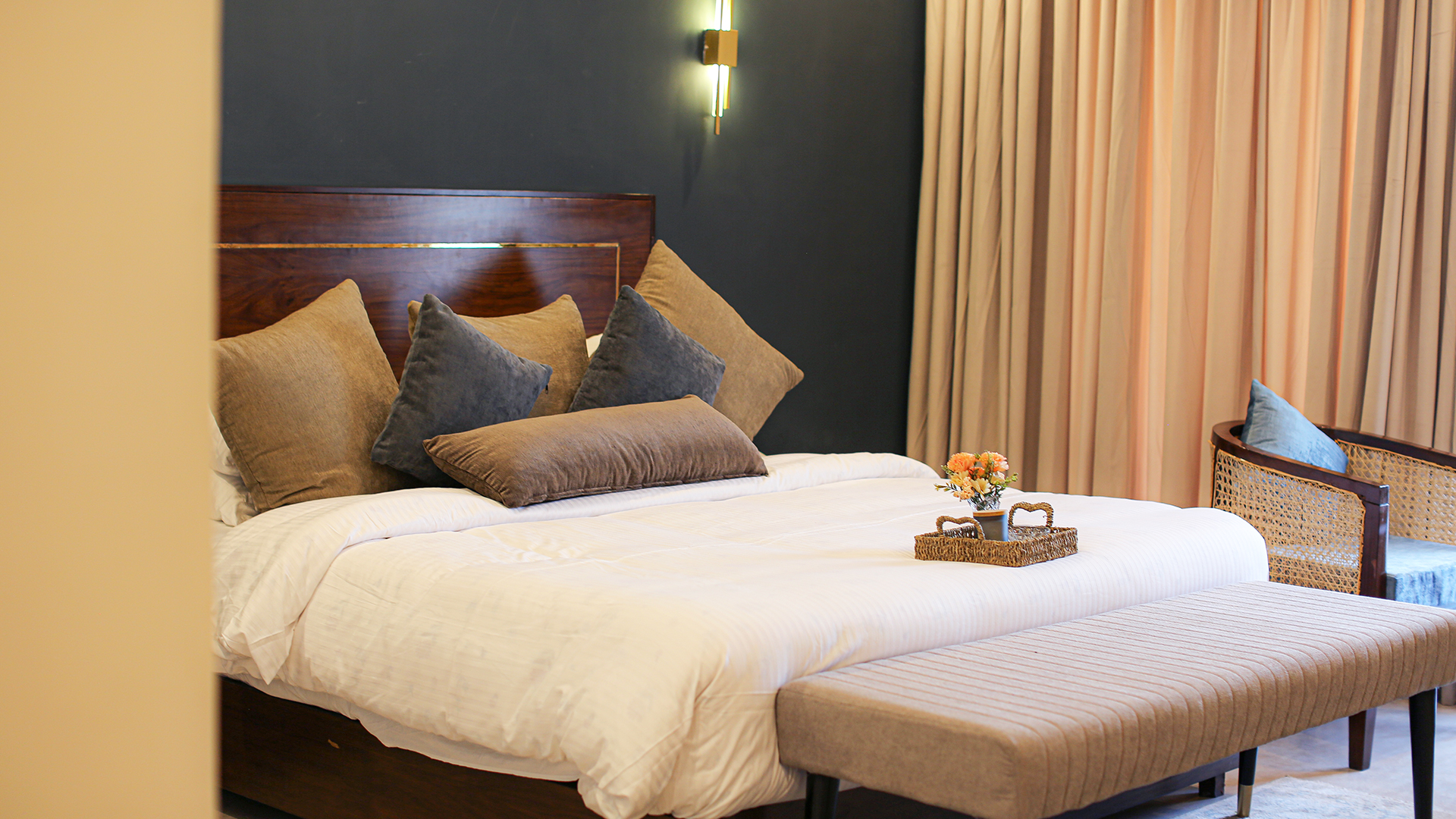 Our Queen Room offers a warm and inviting atmosphere with a comfortable queen-sized bed, air conditioning, and a flat-screen TV. The private bathroom comes with complimentary toiletries, making it a great choice for solo travelers or couples.