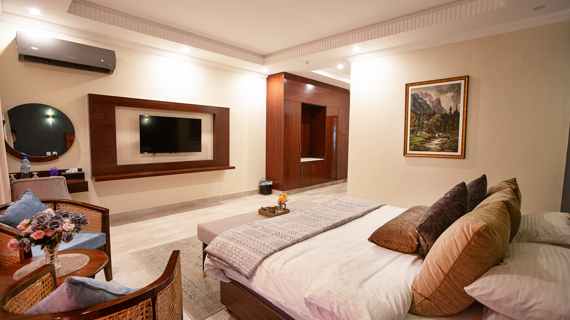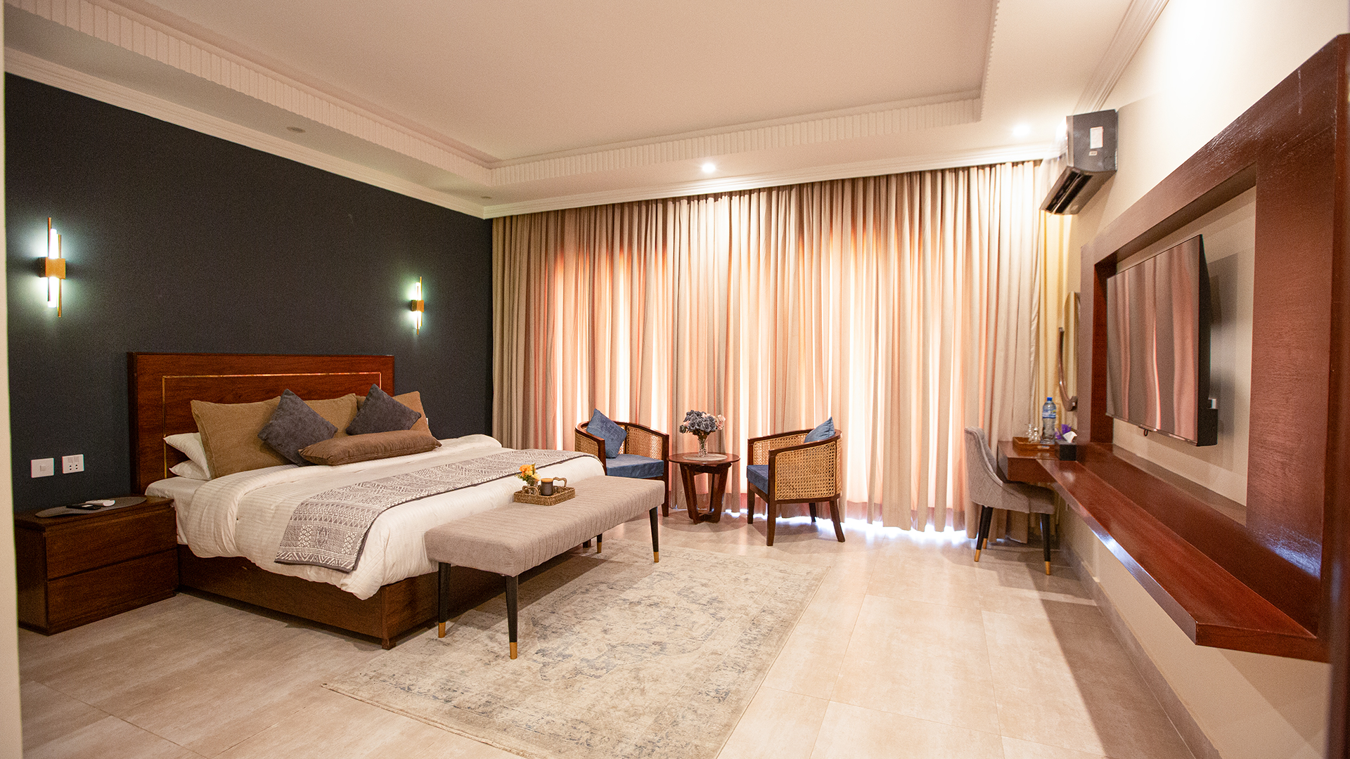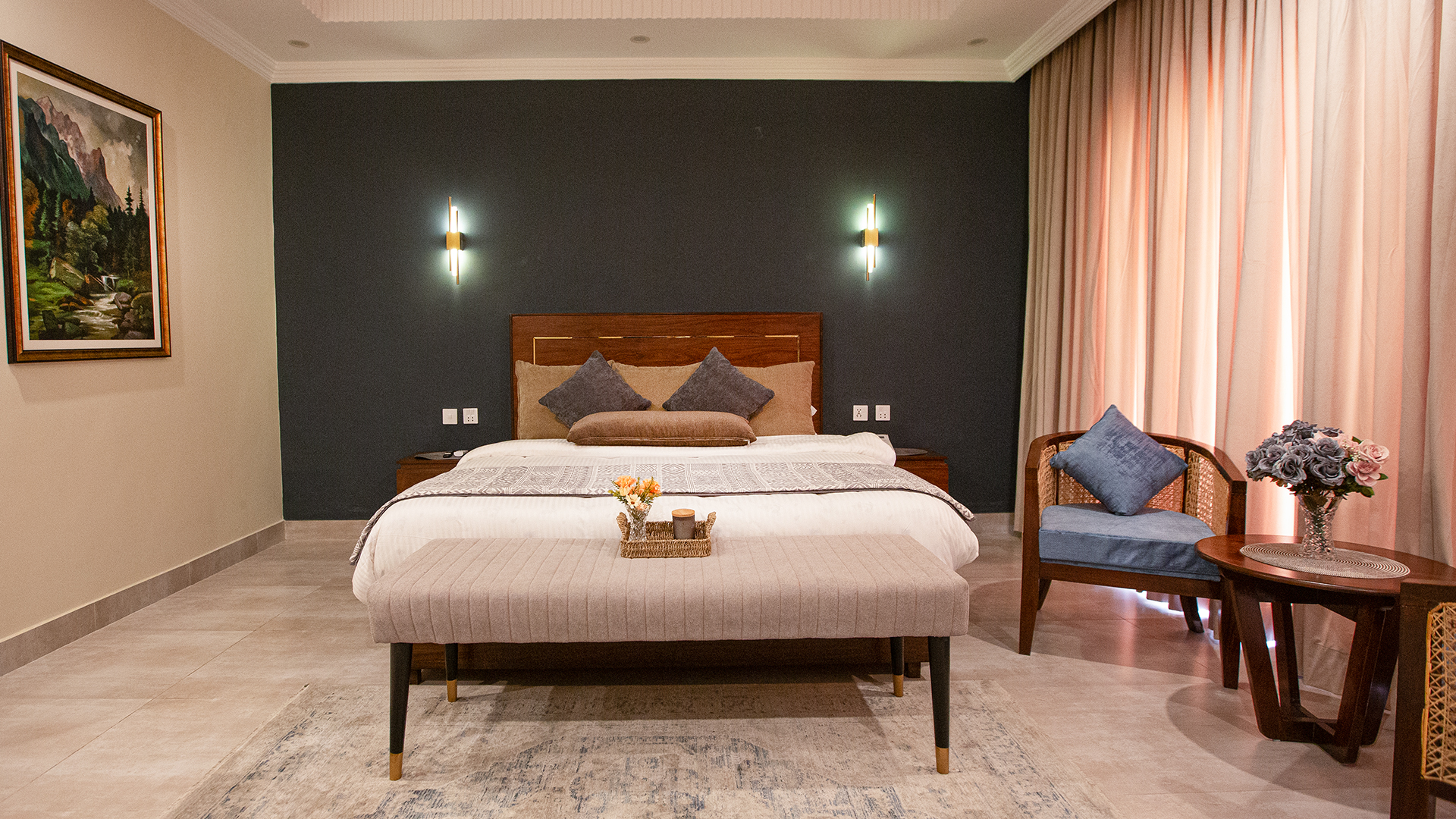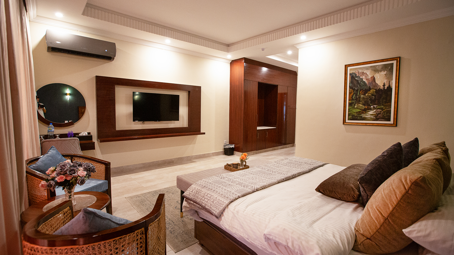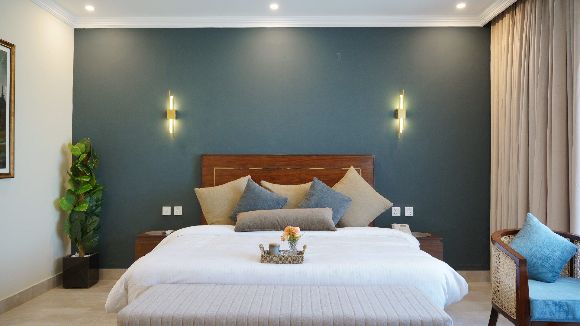 Our Queen Room offers a warm and inviting atmosphere with a comfortable queen-sized bed, air conditioning, and a flat-screen TV. The private bathroom comes with complimentary toiletries, making it a great choice for solo travelers or couples.