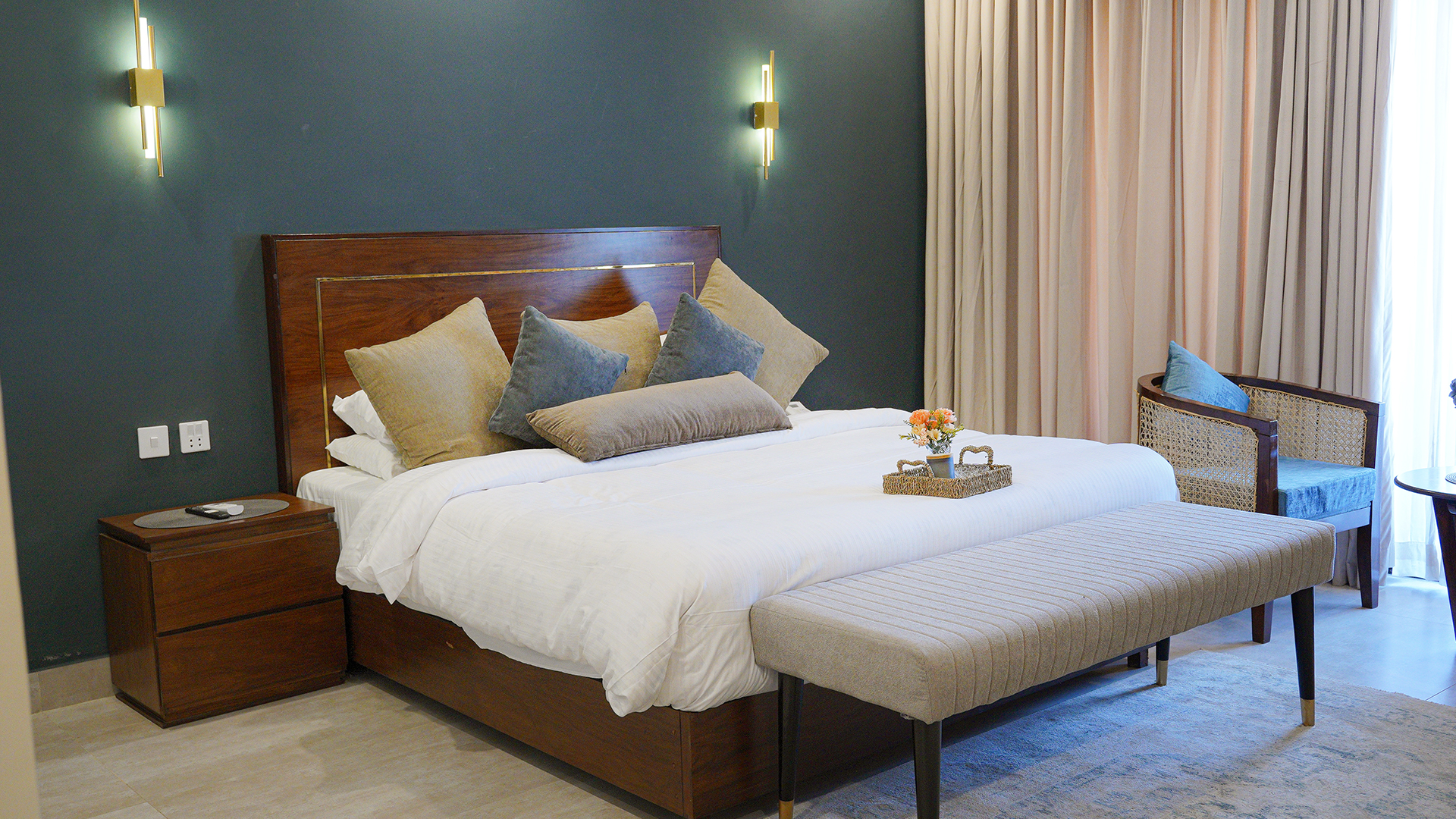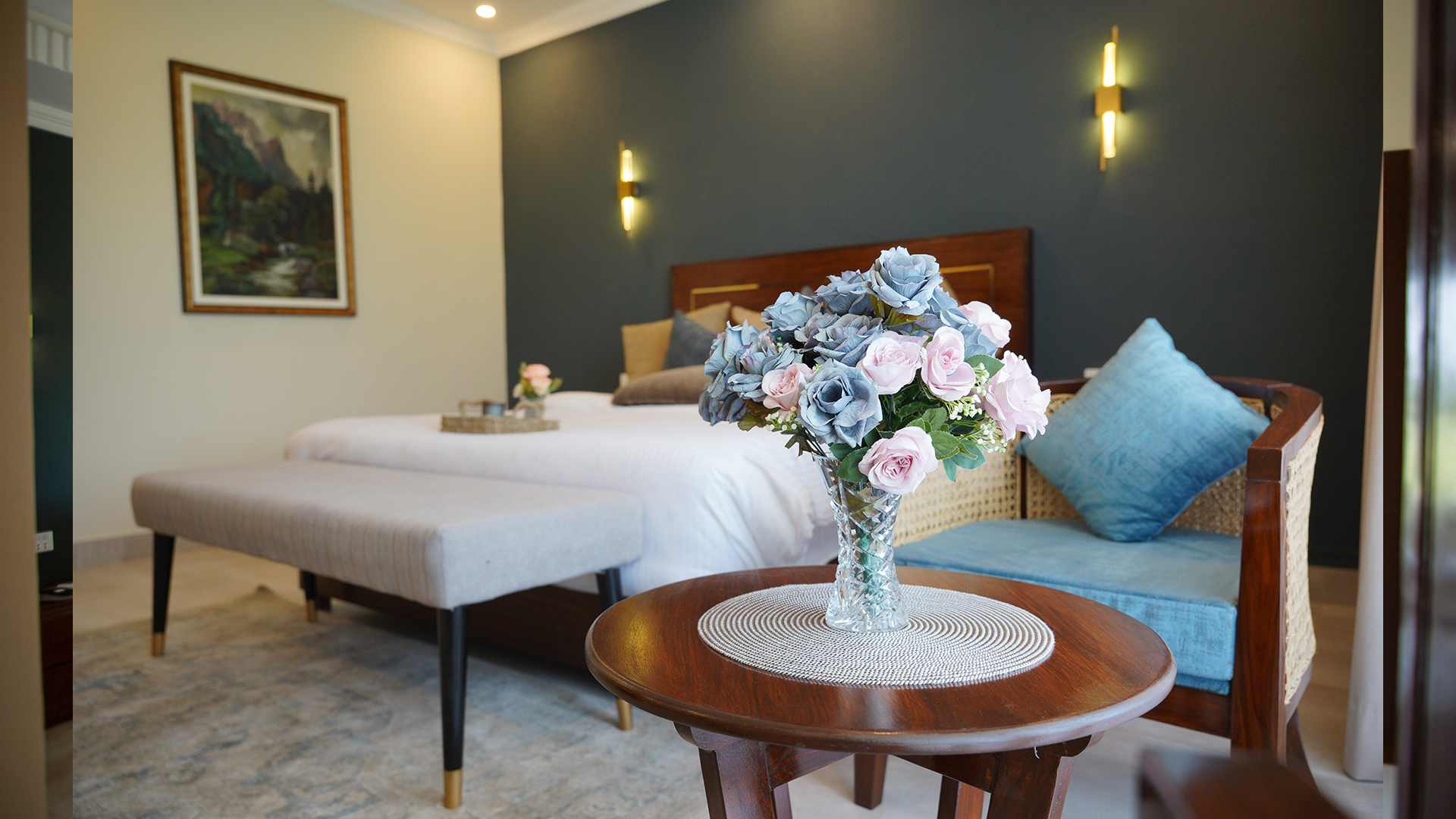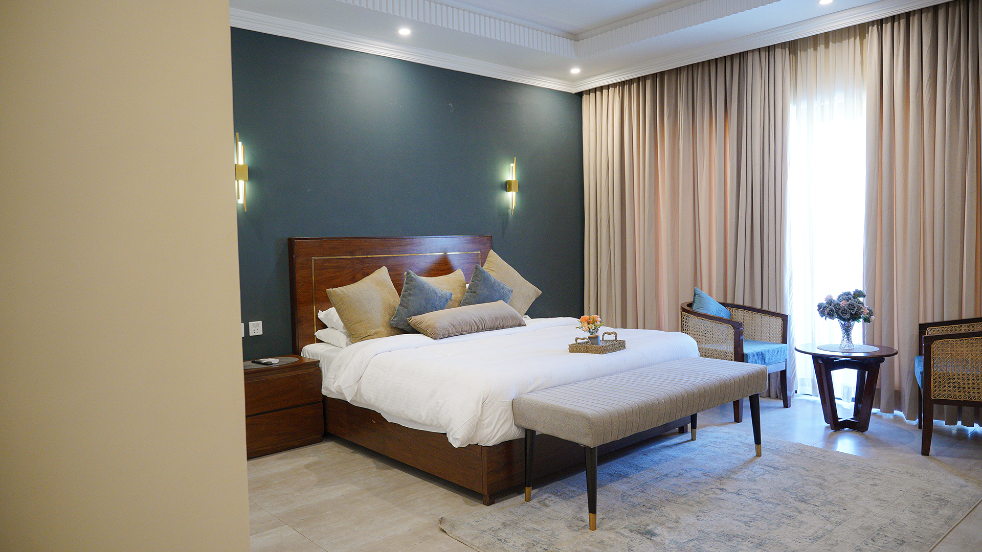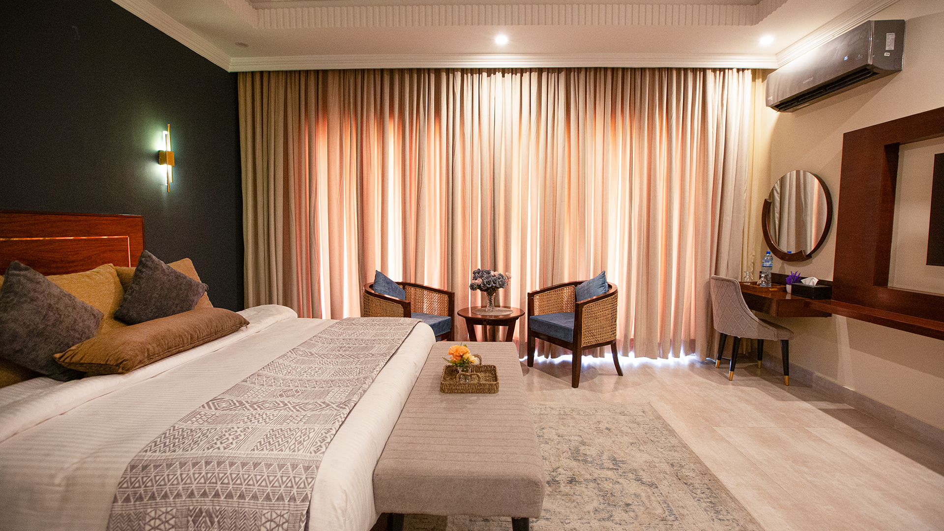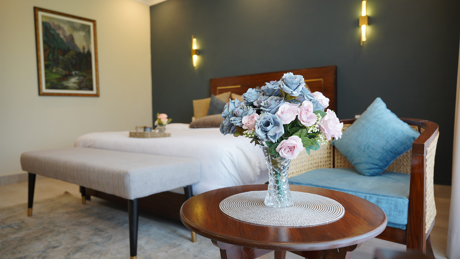 Our Queen Room offers a warm and inviting atmosphere with a comfortable queen-sized bed, air conditioning, and a flat-screen TV. The private bathroom comes with complimentary toiletries, making it a great choice for solo travelers or couples.